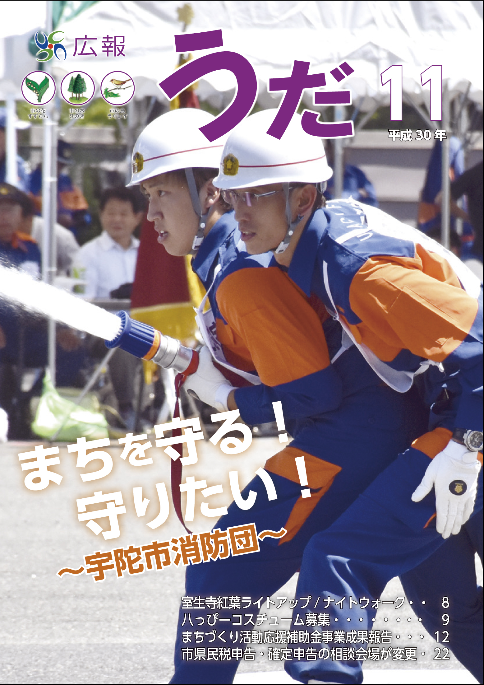 〔P14〕交通安全キャラバン隊が来庁/交通安全フェスティバル2018を開催/内牧ファイターズ近畿大会出場!/JOCジュニアオリンピックカップ出場報告会